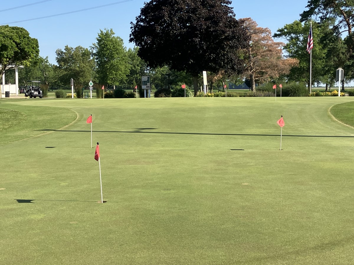 Near the first tee, we have a very large putting green that is in great condition where you can work on your putting and chipping.